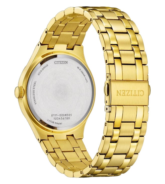 Experience timeless elegance and innovative technology with the Citizen BM7652-52P Eco-Drive Mens Watch. Featuring a sleek gold-tone stainless steel case and bracelet paired with a refined champagne dial, this watch is a sophisticated accessory for any occasion whether your at the office or out for the evening. Powered by Citizens signature Eco-Drive technology, this timepiece runs on any light source, eliminating the need for battery replacements. Designed for everyday wear, it offers durability with a scratch-resistant mineral crystal and comfort with a secure fold-over clasp.