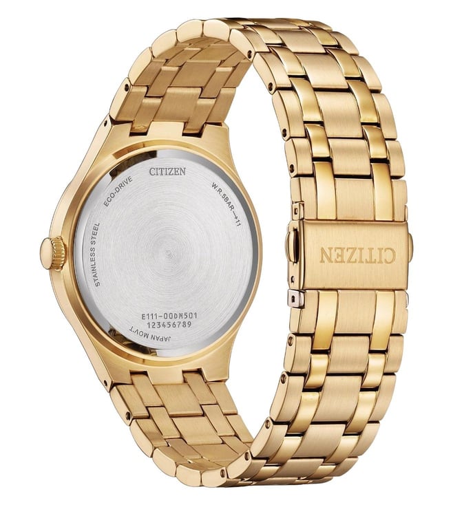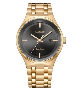The Citizen BM7653-50E Eco-Drive Mens Watch combines classic design with cutting-edge technology. Crafted with a sleek, gold-tone stainless steel case and bracelet, this timepiece boasts a sophisticated black dial that complements any attire, from business to casual. The watchs bold yet refined design makes it a versatile choice for everyday wear. Powered by Citizens Eco-Drive technology, this watch harnesses the power of light whether natural or artificial to keep running, so you'll never have to worry about replacing the battery.