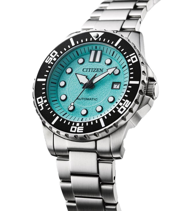 Soar to new heights with this modernized timepiece from our Mechanical Collection. Featuring a sleek aqua blue dial and Date function, it embodies modern craftsmanship and enduring quality. The stainless steel case and bracelet enhance its contemporary design, offering a pure and appealing aesthetic. Perfect for those seeking a blend of sophistication and functionality in a timepiece.