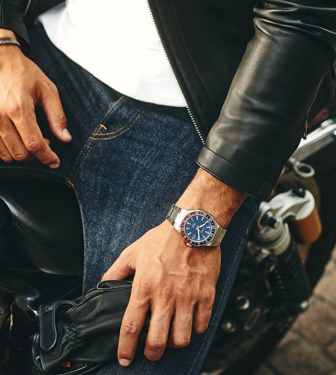 Functional and practical, modern and sporty the new Citizen Series8 880 GMT is the perfect companion for daily wear to spirited travel, and everything in between. Featuring a silver tone stainless steel 41mm case with a red and blue tone bi directional bezel, the model highlights the best of Citizens brushed and polished finishing techniques. Water resistant to 100m and able to withstand magnetic fields up to 16,000 A/m, the watch is powered by the high performance Caliber 9054, with the mechanism allowing for local and travel time displays alongside an independently set hour hand.