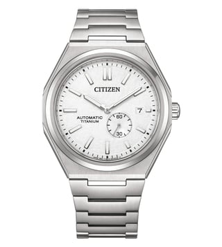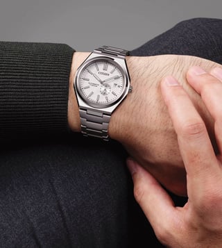 Pairing classic proportions and innovative technology with a distinctly modern style, we present our new Integrated Super Titanium Automatic series. Made with our proprietary material, Super Titanium, which is five times harder and 40 percent lighter than stainless steel and is scratch and rust resistant, this sporty timepiece features a 40.5mm silver tone Super Titanium case that is elevated with finely brushed and polished finishing while being secured to the wrist with an integrated matching bracelet. On the dial, a textured white color is accented with an outer minute ring in black.