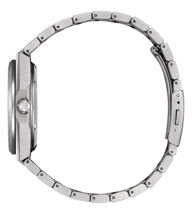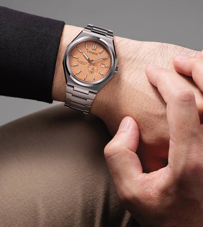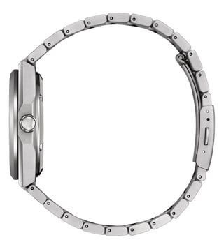 Pairing classic proportions and innovative technology with a distinctly modern style, we present our new Integrated Super Titanium Automatic series. Made with our proprietary material, Super Titanium, which is five times harder and 40 percent lighter than stainless steel and is scratch and rust resistant, this sporty timepiece features a 40.5mm silver tone Super Titanium case that is elevated with finely brushed and polished finishing while being secured to the wrist with an integrated matching bracelet. On the dial, a textured orange color is accented with an outer minute ring in black