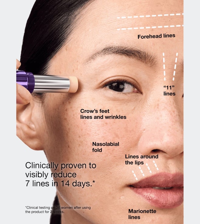 Plumps the appearance of fine, dry lines and visibly corrects even the most stubborn ones with the help of this balm, including forehead lines, frown lines, crow's feet, lines around the lips and smile lines. Smooths the look of skin's texture. Gentle enough for morning and night use. Provides precise application with an easy-to-use stick format.