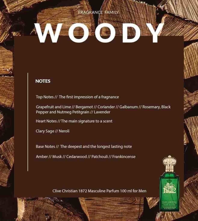 Virginia Cedar, Musk, French Labdanum, Amber, Olibanum And Patchouli.