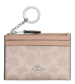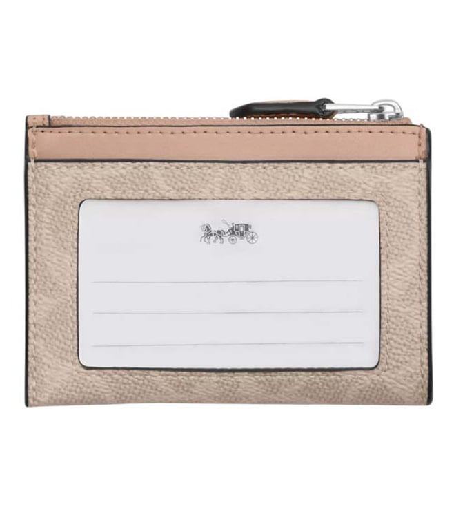 Accessorize perfectly with this beige signature zip card holder by Coach crafted in coated canvas featuring zip closure, 2 credit card slots, ID window and logo detailing to give you a luxe appeal. Products purchased from Darveys are supported exclusively by the warranty/exchange policies of Darveys and its partner boutiques. Brand owners and their channel partners are not responsible for exchange/warranty services for items purchased through Darveys.
