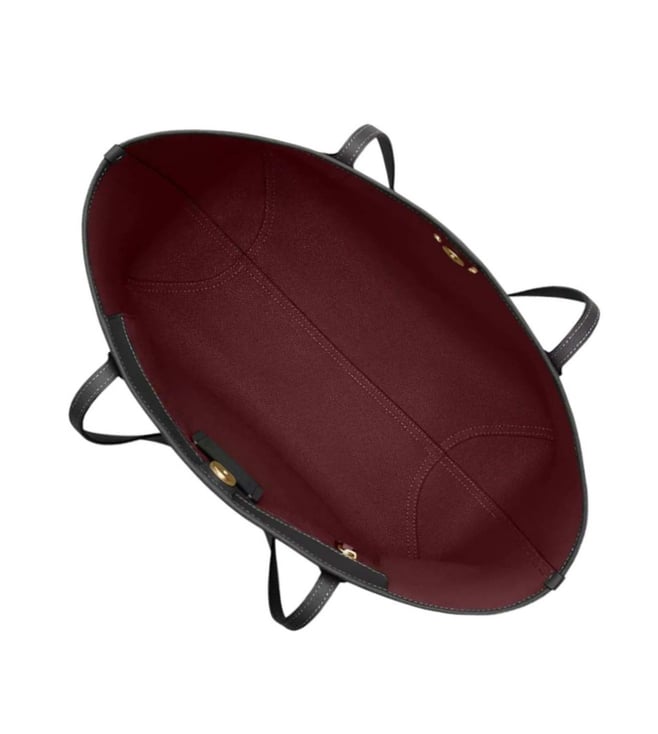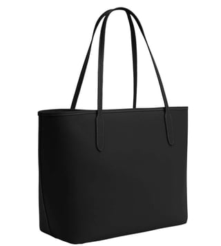 Coach Black City Large Tote crafted in leather featuring snap closure, 1 compartment, inside zip pocket, front logo, dual carry handles. Products purchased from Darveys are supported exclusively by the warranty/exchange policies of Darveys and its partner boutiques. Brand owners and their channel partners are not responsible for exchange/warranty services for items purchased through Darveys.