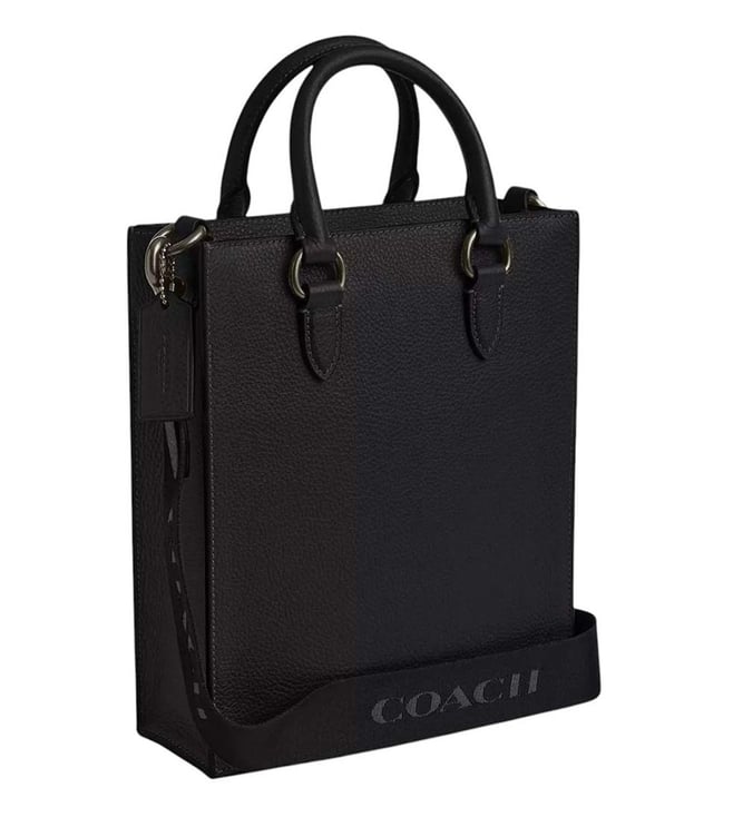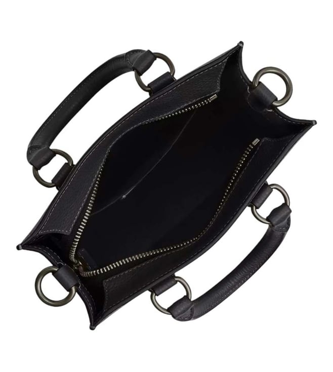 Coach black dylan small tote crafted in leather featuring zip closure, 1 compartment, inside multifunction pocket, front logo, dual carry handles with removable adjustable crossbody strap.
