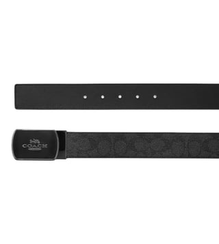 Accessorize perfectly with this black plaque buckle cut to size reversible belt by Coach crafted in coated canvas and leather featuring buckle closure, adjustable sizing and logo detailing to give you a luxe appeal. Products purchased from Darveys are supported exclusively by the warranty/exchange policies of Darveys and its partner boutiques. Brand owners and their channel partners are not responsible for exchange/warranty services for items purchased through Darveys.