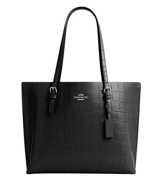 Coach Black Mollie Large Tote crafted in leather featuring open top, 2 compartments, center zip compartment, front logo, dual carry handles. Products purchased from Darveys are supported exclusively by the warranty/exchange policies of Darveys and its partner boutiques. Brand owners and their channel partners are not responsible for exchange/warranty services for items purchased through Darveys.