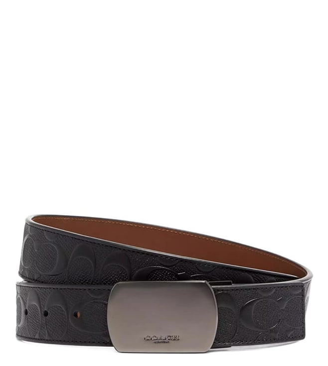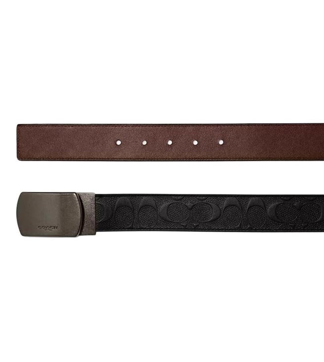 Accessorize perfectly with this black signature cut to size reversible belt by Coach crafted in leather featuring buckle closure, adjustable sizing logo detailing to give you a luxe appeal.