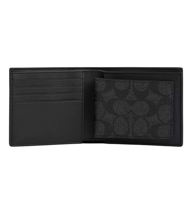 Accessorize perfectly with this black signature wallet by Coach crafted in coated canvas featuring 8 credit card slots, bill compartment, removable insert with id window and two credit card slots, logo detailing to give you luxe appeal. Products purchased from Darveys are supported exclusively by the warranty/exchange policies of Darveys and its partner boutiques. Brand owners and their channel partners are not responsible for exchange/warranty services for items purchased through Darveys.