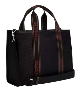 Coach black smith large tote crafted in leather featuring snap closure, 1 compartment, inside pocket, outside open pocket, logo detailing, dual carry handles with removable shoulder strap. Products purchased from darveys are supported exclusively by the warranty/exchange policies of darveys and its partner boutiques. Brand owners and their channel partners are not responsible for exchange/warranty services for items purchased through darveys.