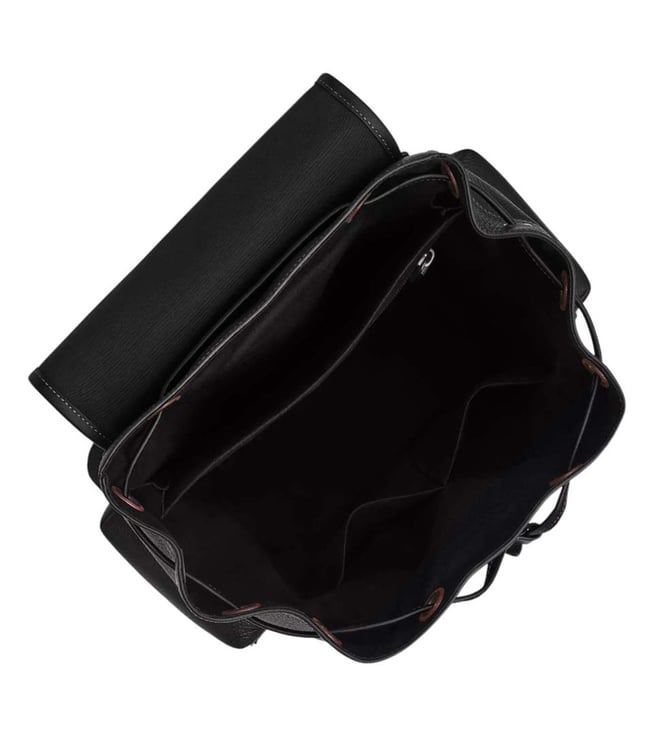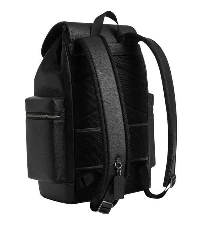 Coach black sprint large backpack crafted in leather featuring drawstring and snap closures, 1 compartment, inside zip and multifunction pockets, outside zip and flap pockets, logo detailing, top handle with adjustable backpack straps.