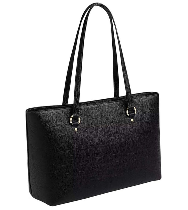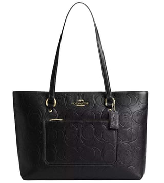 Coach black station large tote crafted in leather featuring zip closure, 1 compartment, inside zip and multifunction pockets, outside zip pocket, metal logo, dual carry handles. Products purchased from Darveys are supported exclusively by the warranty/exchange policies of Darveys and its partner boutiques. Brand owners and their channel partners are not responsible for exchange/warranty services for items purchased through Darveys.