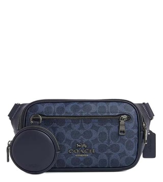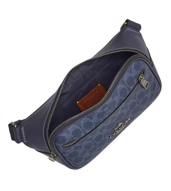 Coach Denim Elias Small Crossbody Bag crafted in coated canvas and leather featuring zip closure, 1 compartment, inside slip pocket, outside zip pocket, logo detailing, adjustable crossbody strap. Products purchased from Darveys are supported exclusively by the warranty/exchange policies of Darveys and its partner boutiques. Brand owners and their channel partners are not responsible for exchange/warranty services for items purchased through Darveys.