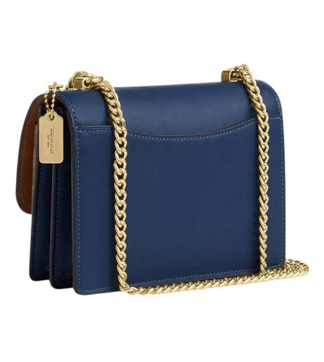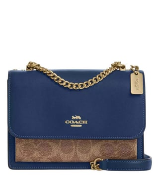 Coach blue klare mini shoulder bag crafted in coated canvas and leather featuring snap closure, 2 compartments, inside multifunction and zip pockets, outside open pocket, front logo, convertible chain link crossbody strap. Products purchased from Darveys are supported exclusively by the warranty/exchange policies of Darveys and its partner boutiques. Brand owners and their channel partners are not responsible for exchange/warranty services for items purchased through Darveys.