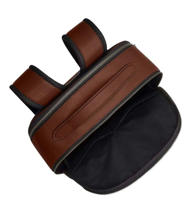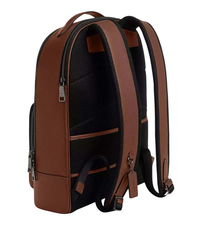 Coach brown ethan large backpack crafted in leather featuring zip closure, 2 compartments, inside zip and multifunction pockets, outside zip pockets, metal logo, top handle with adjustable backpack straps.