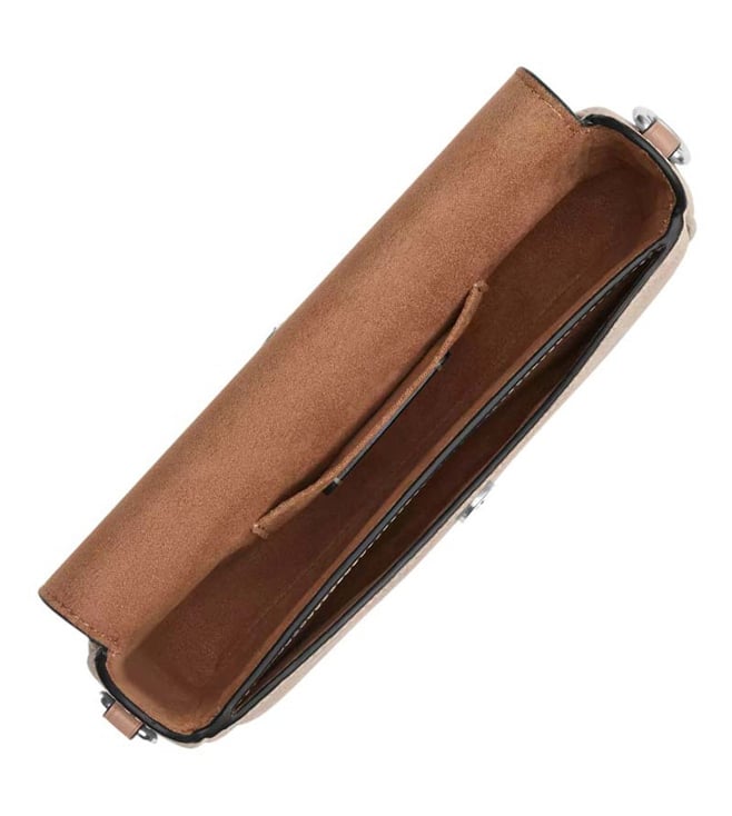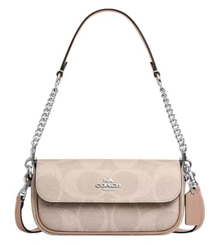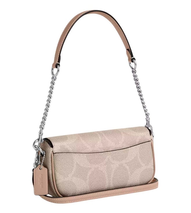 Coach Light Brown Hailey Small Shoulder Bag crafted in coated canvas and leather featuring snap closure, 1 compartment, inside open pocket, logo detailing, removable shoulder and crossbody strap. Products purchased from Darveys are supported exclusively by the warranty/exchange policies of Darveys and its partner boutiques. Brand owners and their channel partners are not responsible for exchange/warranty services for items purchased through Darveys.