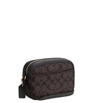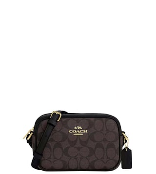 Coach Dark Brown Jamie Mini Crossbody Bag crafted in coated canvas and leather featuring zip closure, 1 compartment, inside snap pocket and card slots, outside slip pocket, logo detailing, adjustable crossbody strap. Products purchased from Darveys are supported exclusively by the warranty/exchange policies of Darveys and its partner boutiques. Brand owners and their channel partners are not responsible for exchange/warranty services for items purchased through Darveys.