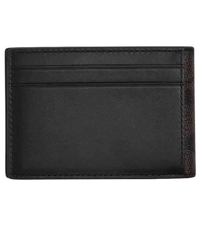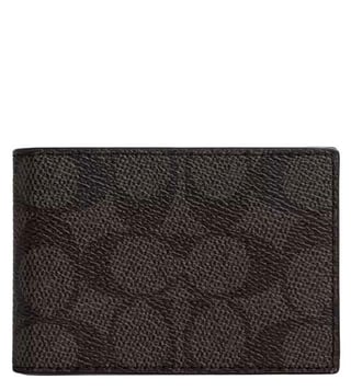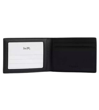 Accessorize perfectly with this dark brown signature bi-fold card holder by Coach crafted in leather featuring an outside open pocket, an inside open pocket, two inside credit card slots, two outside credit card slots, an ID window and logo detailing. Dimension: 10.16 x 6.9 cm.