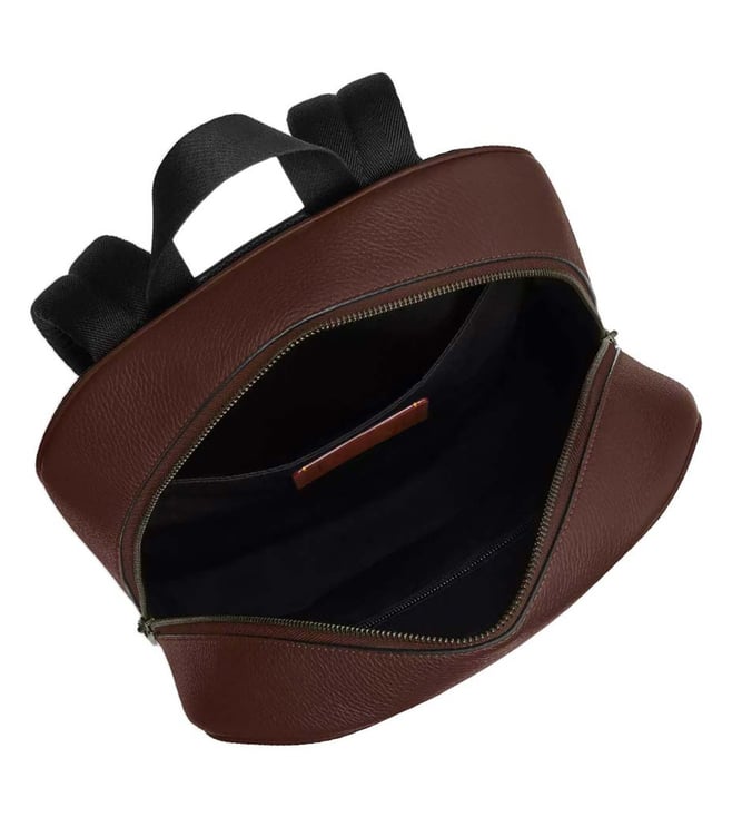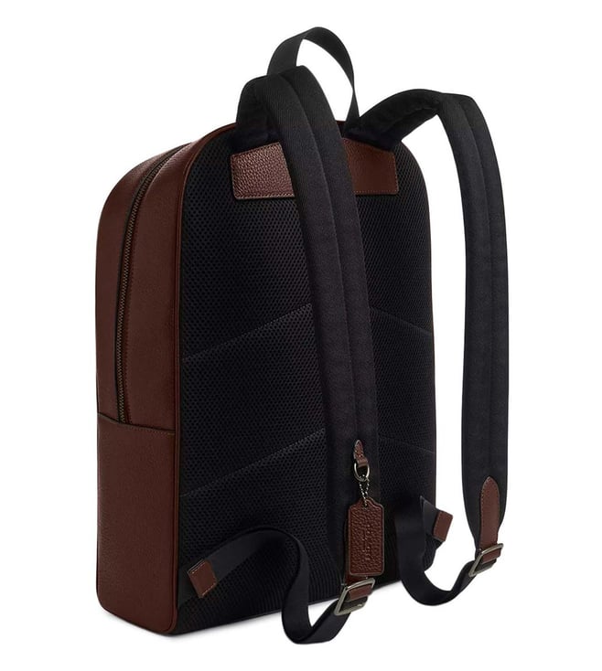 Coach Brown Owen Large Backpack crafted in leather featuring zip closure, 1 compartment, inside zip pocket, outside zip pocket, front logo, top handle with adjustable backpack straps.