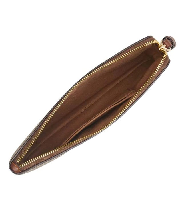 Accessorize perfectly with this brown signature corner zip wristlet by Coach crafted in coated canvas featuring zip closure, 2 credit card slots, wrist strap, 1 compartment and logo detailing to give you a luxe appeal.