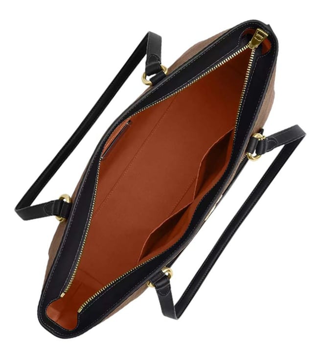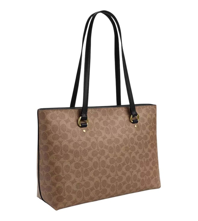 Coach brown station large tote crafted in coated canvas and leather featuring zip closure, 1 compartment, inside zip and multifunction pockets, outside zip pocket, metal logo, dual carry handles.