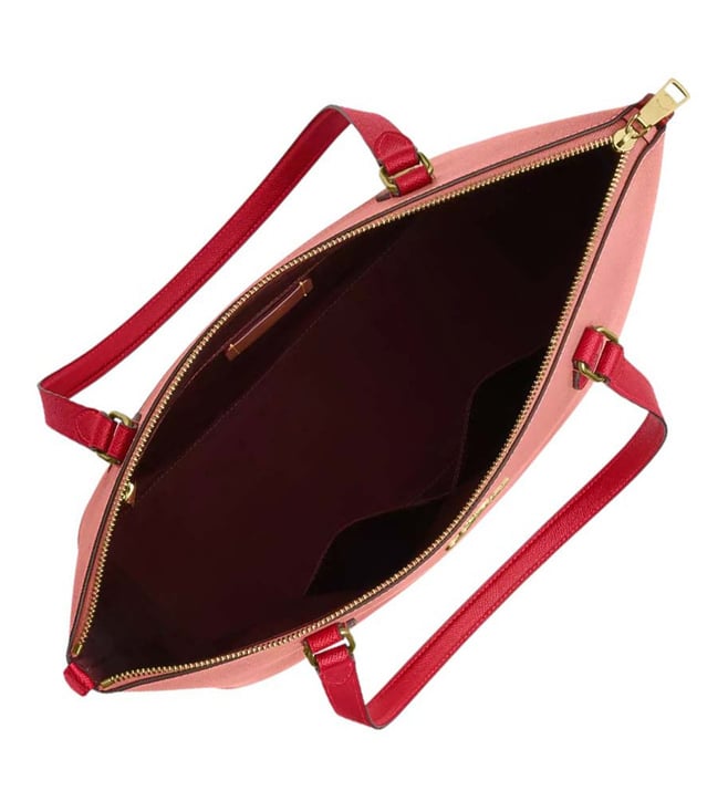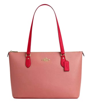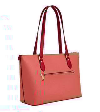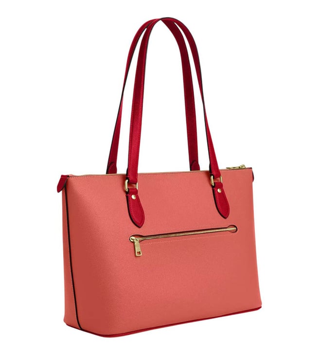 Coach burnt coral gallery large tote crafted in recycled leather featuring zip closure, 1 compartment, inside zip and slip pockets, outside zip pocket, front logo, dual carry handles.