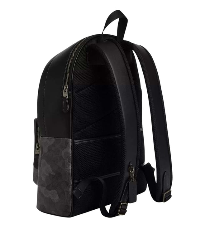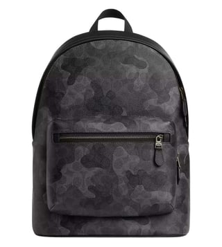Coach camo print west large backpack crafted in coated canvas and leather featuring zip closure, 2 compartments, inside zip and multifunction pockets, outside zip pocket, logo detailing, top handle with adjustable backpack straps.