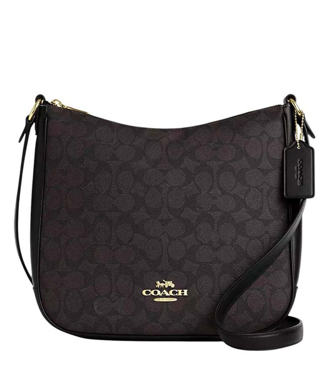 Coach dark brown ellie file medium crossbody bag crafted in coated canvas and leather featuring zip closure, 1 compartment, inside multifunction pocket, outside zip pocket, logo detailing, adjustable crossbody strap.