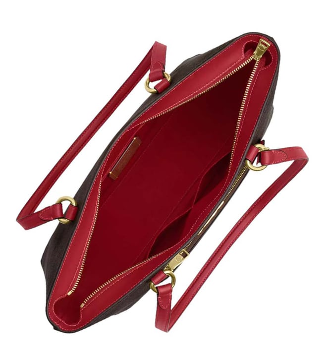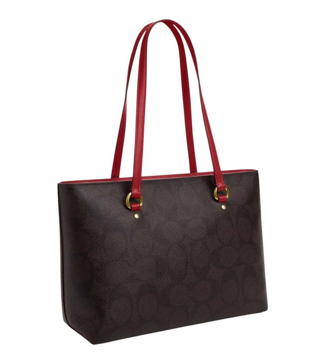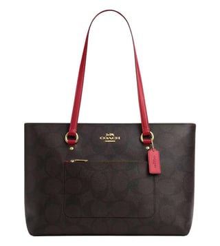 Coach dark brown station large tote crafted in coated canvas and leather featuring zip closure, 1 compartment, inside zip and multifunction pockets, outside zip pocket, metal logo, dual carry handles.