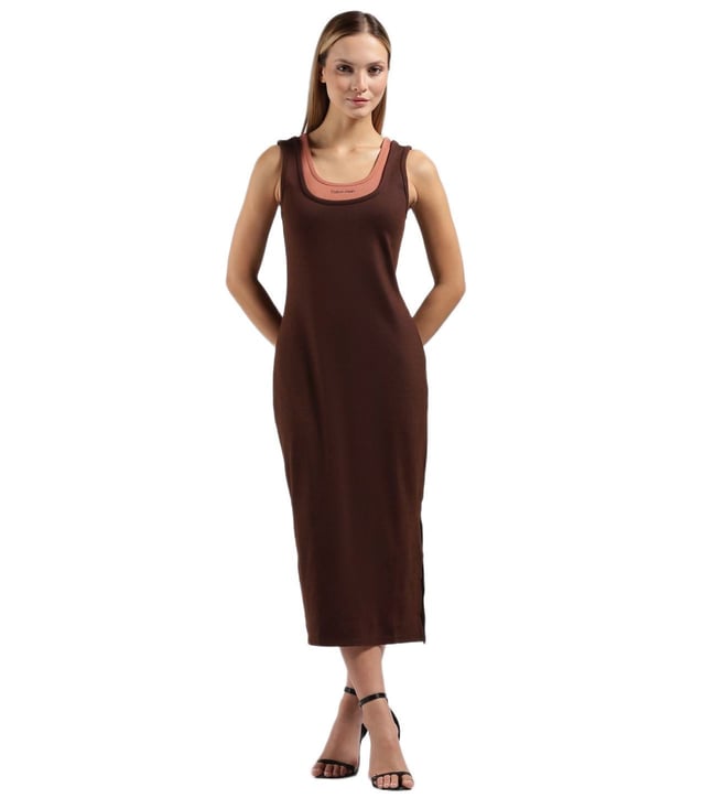 Women Beige Solid Pure Cotton Round Neck Straight Dress