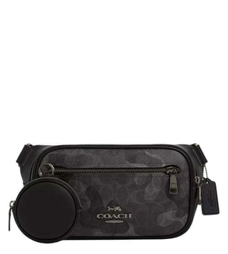 Coach Grey Elias Small Crossbody Bag crafted in coated canvas and leather featuring zip closure, 1 compartment, inside slip pocket, outside zip pocket, logo detailing, adjustable crossbody strap. Products purchased from Darveys are supported exclusively by the warranty/exchange policies of Darveys and its partner boutiques. Brand owners and their channel partners are not responsible for exchange/warranty services for items purchased through Darveys.