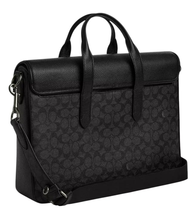 Coach Dark Grey Sullivan Large Briefcase Bag crafted in coated canvas and leather featuring magnetic snap closure, 1 compartment, inside zip and slip pockets, outside magnetic pocket, logo detailing, dual carry handles with removable adjustable shoulder strap. Products purchased from Darveys are supported exclusively by the warranty/exchange policies of Darveys and its partner boutiques. Brand owners and their channel partners are not responsible for exchange/warranty services for items purchased through Darveys.