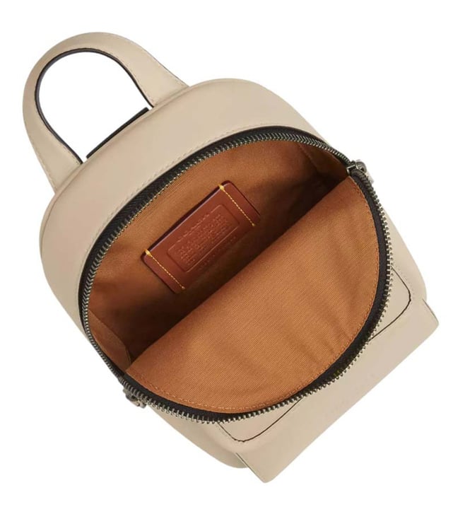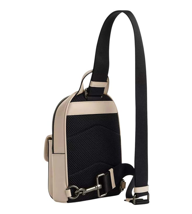 Coach ivory turnlock sling small crossbody bag crafted in leather featuring zip closure, 1 compartment, outside turnlock pocket, front logo, top handle with adjustable crossbody strap.