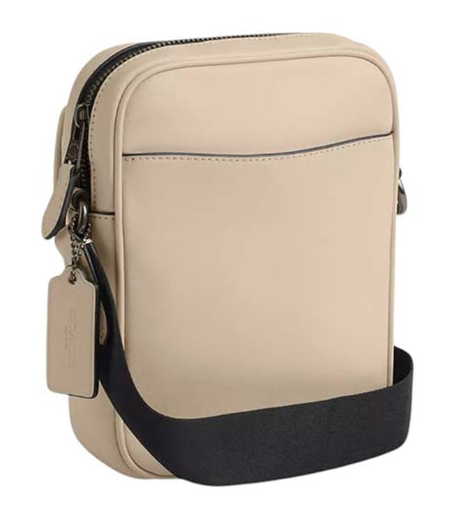 Coach ivory turnlock small crossbody bag crafted in leather featuring zip closure, 1 compartment, outside turnlock and open pockets, inside multifunction pocket, logo tag, adjustable crossbody strap.