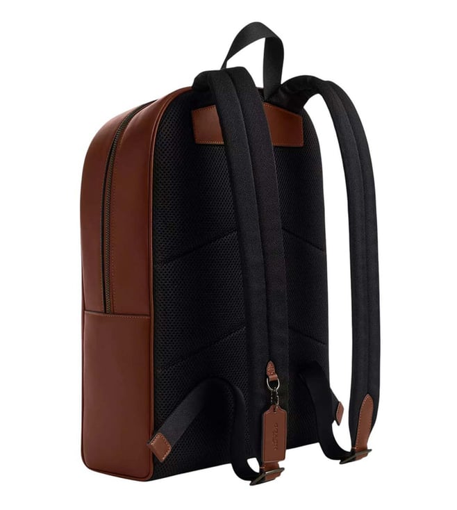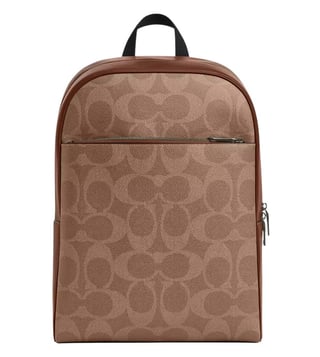 Coach khaki owen large backpack crafted in coated canvas and leather featuring zip closure, 1 compartment, inside zip pocket, outside zip pocket, top handle with adjustable backpack straps.