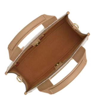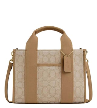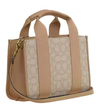Coach khaki smith 24 small tote crafted in jacquard and leather featuring snap closure, 1 compartment, outside open pocket, logo detailing, dual carry handles with removable shoulder strap. Products purchased from darveys are supported exclusively by the warranty/exchange policies of darveys and its partner boutiques. Brand owners and their channel partners are not responsible for exchange/warranty services for items purchased through darveys.