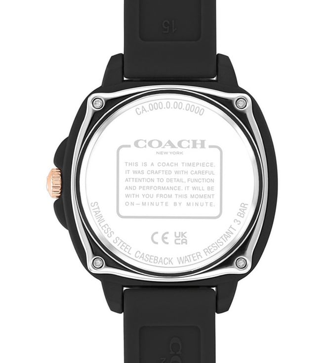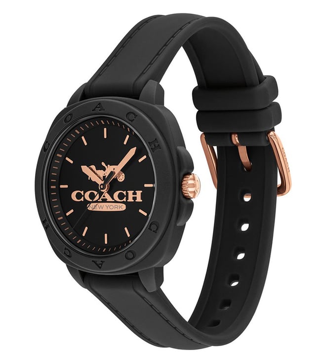 Introducing the Coach KITT women watch, featuring a chic Tonneau dial shape that sets it apart. This fashionable timepiece is powered by a reliable Quartz movement and protected by a durable mineral glass crystal. With its stylish design and water resistance, the KITT model effortlessly blends elegance with practicality. Elevate your look with this stunning Coach watch.