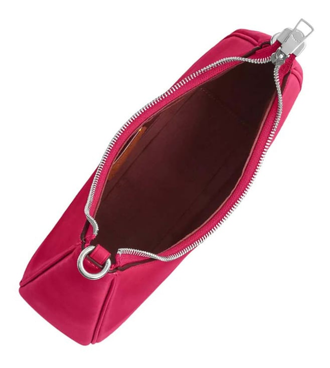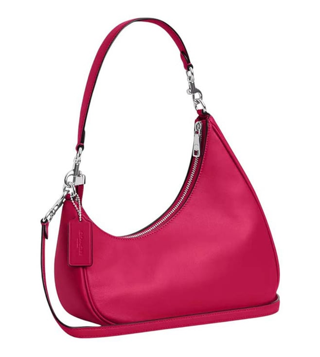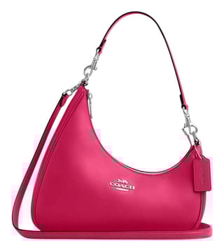 Coach pink twisted teri medium shoulder bag crafted in leather featuring zip closure, 1 compartment, inside multifunction pocket, metal logo, removable shoulder handle with removable crossbody strap.