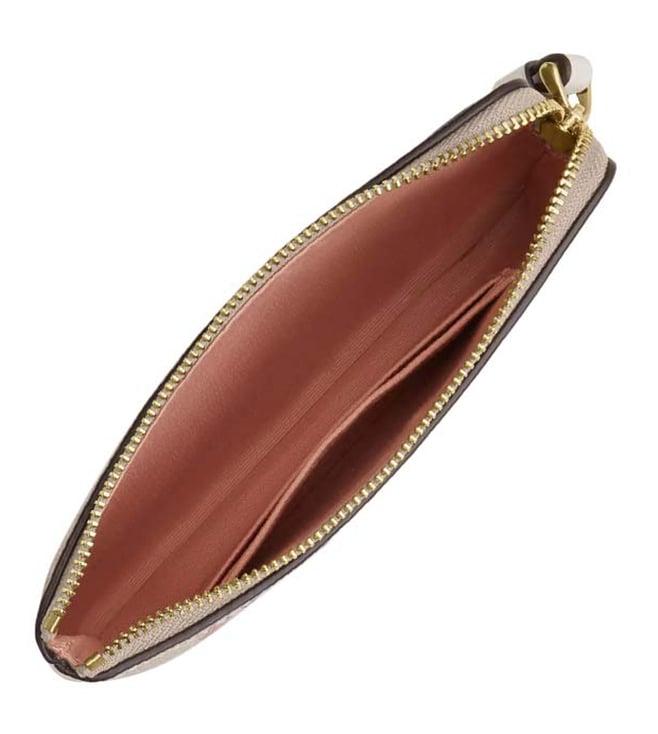 Accessorize perfectly with this khaki floral print signature wristlet by Coach crafted in coated canvas featuring zip closure, 2 credit card slots, wrist strap and logo detailing. Products purchased from Darveys are supported exclusively by the warranty/exchange policies of Darveys and its partner boutiques. Brand owners and their channel partners are not responsible for exchange/warranty services for items purchased through Darveys.