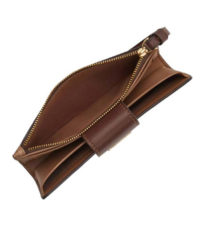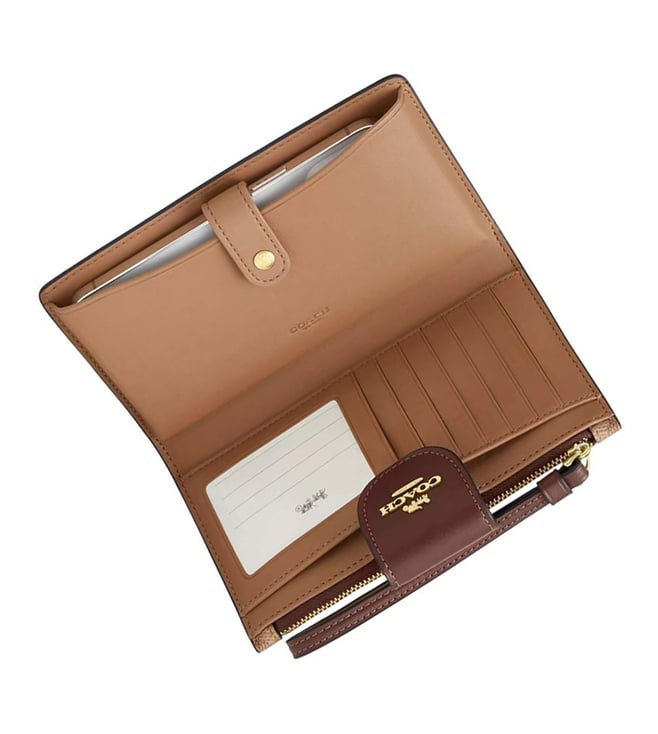 Accessorize perfectly with this brown signature wallet by Coach crafted in coated canvas featuring snap closure, 6 credit card slots, zip coin pocket, wrist strap, ID window, bill compartment and logo detailing to give you a luxe appeal. Products purchased from Darveys are supported exclusively by the warranty/exchange policies of Darveys and its partner boutiques. Brand owners and their channel partners are not responsible for exchange/warranty services for items purchased through Darveys.