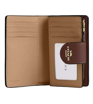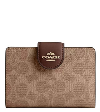 Accessorize perfectly with this brown signature wallet by Coach crafted in coated canvas featuring snap closure, 7 credit card slots, zip coin pocket, bill compartment, ID window and logo detailing. Products purchased from Darveys are supported exclusively by the warranty/exchange policies of Darveys and its partner boutiques. Brand owners and their channel partners are not responsible for exchange/warranty services for items purchased through Darveys.