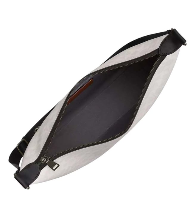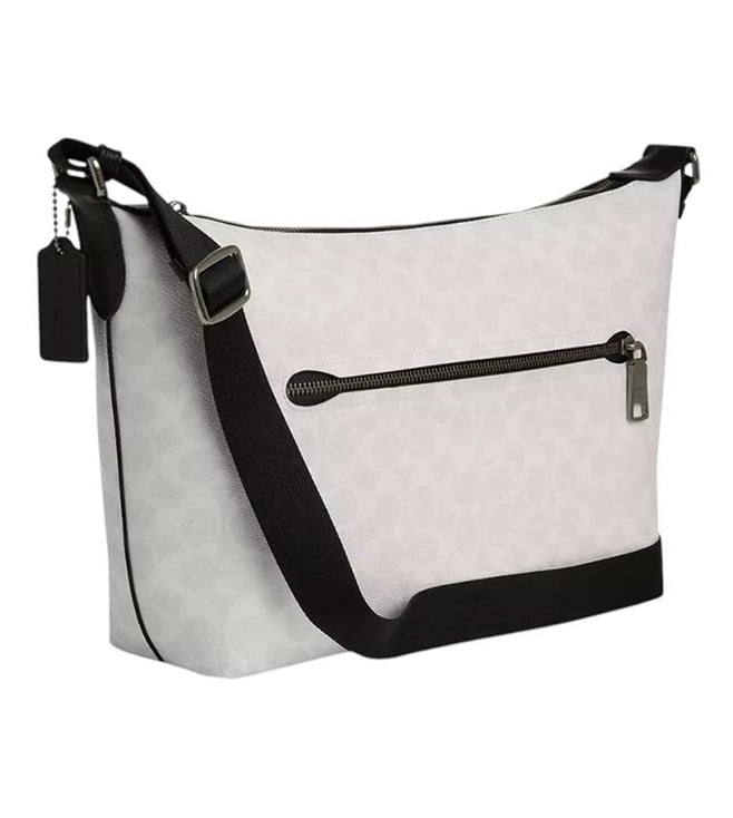 Coach white finn large crossbody bag crafted in leather featuring zip closure, 1 compartment, inside zip pocket, outside zip pocket, logo tag, adjustable crossbody strap.