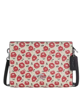 Coach White Slim Small Crossbody Bag crafted in floral printed coated canvas and leather featuring zip closure, 1 compartment, interior 2 card slots, front logo, removable crossbody strap.