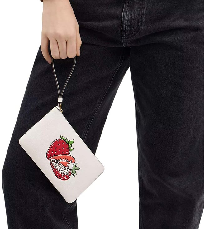 Coach White Graphic Print Corner Zip Wristlet
