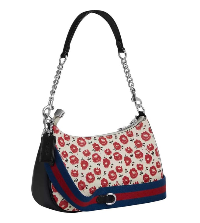 Coach white teri medium shoulder bag crafted in printed coated canvas featuring zip closure, 1 compartment, inside multifunction pocket, front logo, removable shoulder handle with removable adjustable crossbody strap.