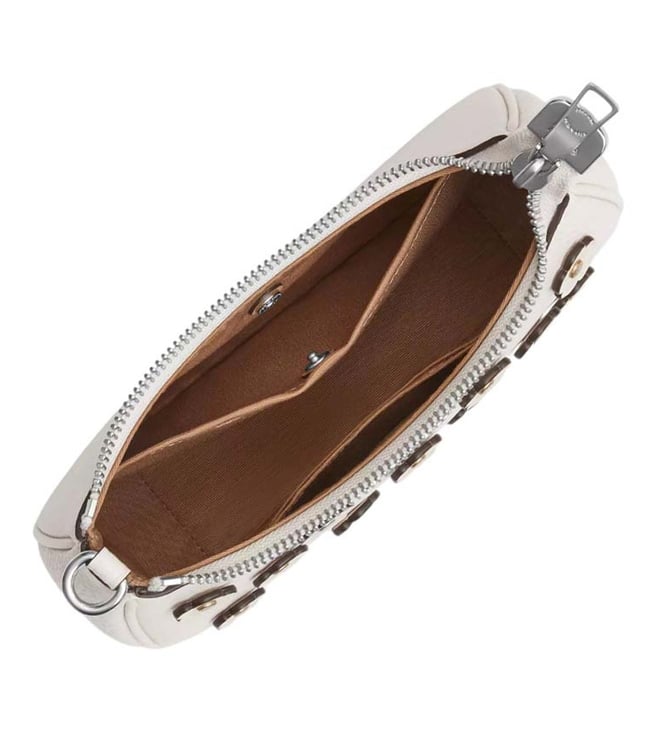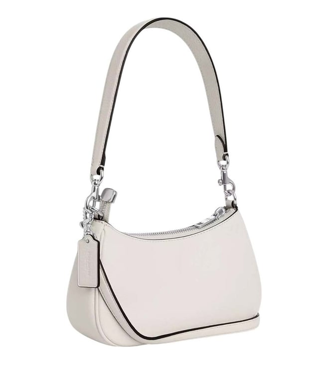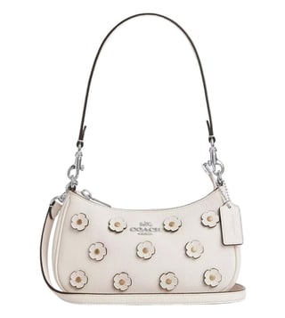 Coach white teri mini crossbody bag crafted in leather featuring zip closure, 1 compartment, inside snap pocket, two credit card slots, front logo, removable shoulder and crossbody strap.