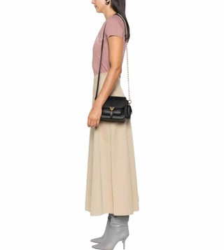 Black leathergrained texturefoldover top with magnetic fasteningtop zip fasteningadjustable leather and chain-link shoulder strapengraved logotwo side flap pocketslogo stamp to the rearmain compartmentinternal logo patchinternal slip pocketinternal patch pocketfull lining Products purchased from Darveys are supported exclusively by the warranty/exchange policies of Darveys and its partner boutiques. Brand owners and their channel partners are not responsible for exchange/warranty services for items purchased through Darveys.