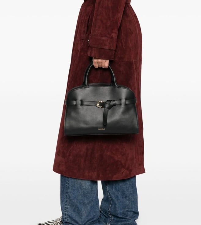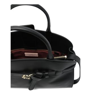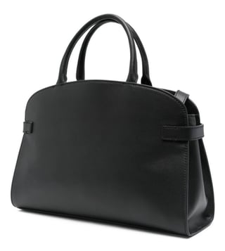 Black closes with magnetic clasp two handles removable and adjustable shoulder strap fittings of gold-coloured metal plain coloured Lining cotton one main compartment divider with zip pocket one zip pocket With its timeless design and practical features, this bag is a must-have accessory for the modern woman on-the-go.